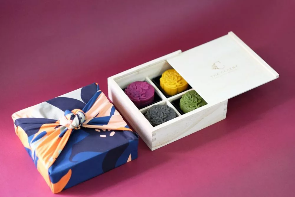 Steering away from the traditional style, The Cakery offers a vegan and gluten-free option packed with healthy superfoods for a guilt-free option. The vibrantly coloured mooncakes are packed in an eco-friendly wooden box and each delicately wrapped in a scarf. Don’t be fooled by the bright colours, not only are the mooncakes vegan and gluten-free, they’re also free from dairy, egg, refined sugar, preservatives and artificial colouring.