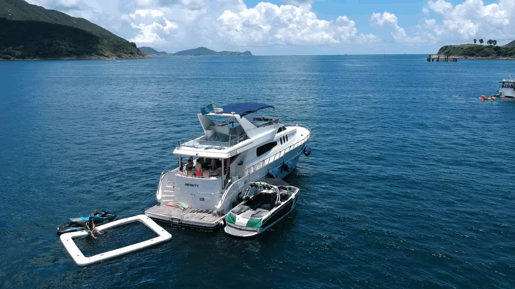 Hong Kong Yachting has earned recognition in the boat party scene through its flagship vessels Jungle Jane and Tarzan. The company offers an impressive fleet of 50 rental boats to choose from. Their vessels come fully equipped with comprehensive amenities, and they provide two distinctive experiences: the ‘Hong Kong Firework Cruise’ and the ‘Container Port Tour’ for guests seeking adventures beyond the typical inflatable entertainment options.